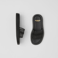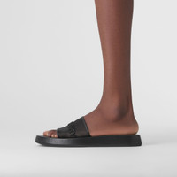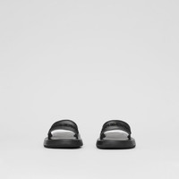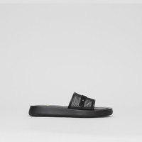 Embroidered Logo Mesh and Leather Slides