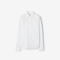 Product Details A long-sleeved shirt in cotton poplin, embroidered with a tonal Equestrian Knight Design. The formal style is tailored to a regular fit and lined with Burberry Check at the placket and cuffs in signature archive beige. - Button closure - Point collar - Single-button cuffs - Curved hem - Embroidered Equestrian Knight Design at front - Regular fit. Fits true to size, take your normal size. - Machine wash - Item 81207871 Size & Fit - Length: 70.5cm/27.8in (size UK 6) - Model’s height: 180cm/5ft 11in. Model wears size UK 6 Fabric & Care - 100% cotton - Panel: 100% polyester - Buttons: mother-of-pearl - Imported