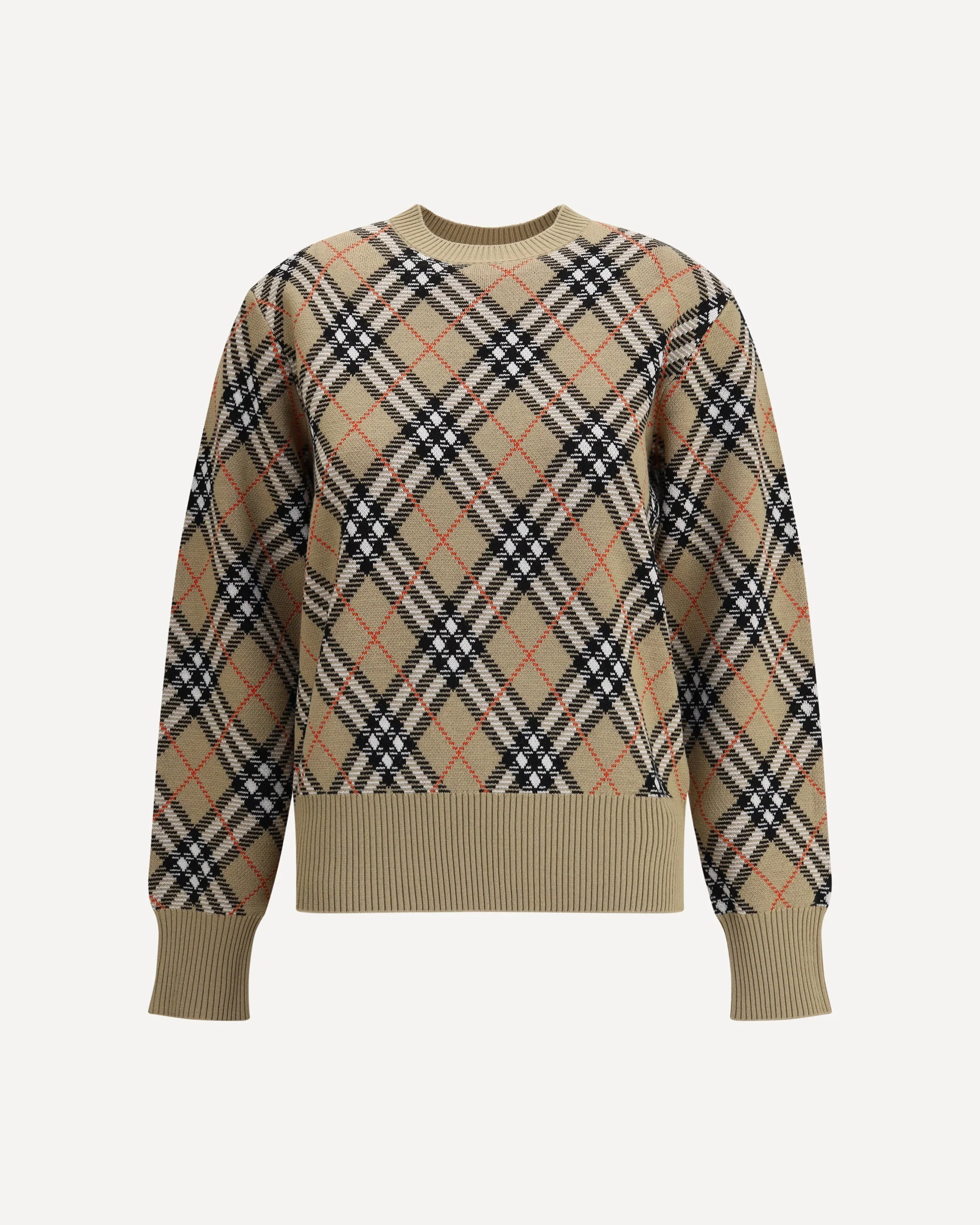 Burberry's wool Sweater features a ribbed crew neck, cuffs and high hem also ribbed for comfort and fit. The garment features the brand's iconic all-over Archivio Check pattern, a distinctive symbol of the brand, lending a classic and refined touch to any look. DETAILS - Sku: 8110514_C1309 - Season: AW25 - Fit: Regular - Composition: GENERAL 92% Wool 8% Polyester - MADE IN ROMANIA