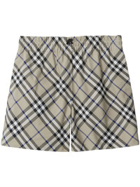 Equestrian Knight checked cotton shorts Highlights - Taupe - Cotton - Twill weave - Check pattern - Embroidered equestrian knight motif to the rear - Elasticated drawstring waistband - Rear zip-fastening pocket - Thigh-length - Straight hem Imported Composition Cotton 100% Washing instructions Machine Wash