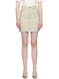 Non-stretch denim miniskirt. · Belt loops · Five-pocket styling · Button fly · Calfskin suede logo patch at back waistband · Jacquard logo graphic at back hem Supplier color: Rubble Body: 100% cotton. Trim: 100% calfskin. Made in Italy 251376F090001