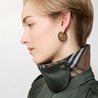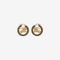 Product Details A pair of earrings made in Italy from brass with gold plating. The hoops feature our Equestrian Knight Design at the centre and are pave-set with black cubic zirconia. - Engraved Burberry lettering at inner - Pierced jewellery cannot be returned. This does not affect your statutory rights. - Comes with a dust bag - Item 81205941 Size & Fit - 2.8 x 2.9cm/1.1 x 1.1in Fabric & Care - 95% brass with gold plating, 5% cubic zirconia - Made in Italy
