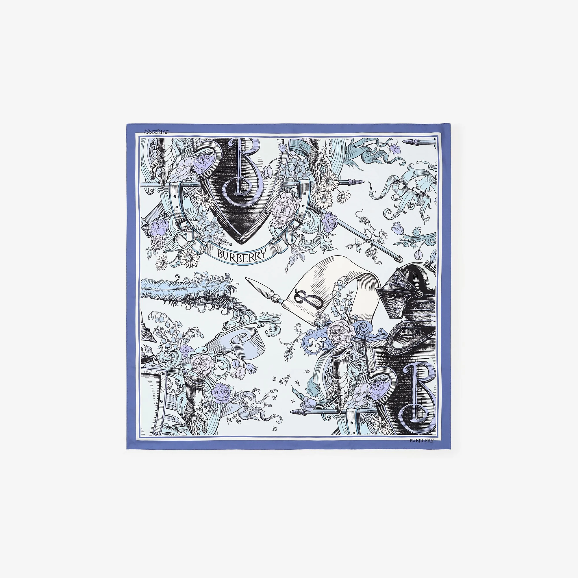 Product Details A scarf made in Italy from silk twill, printed with artwork depicting elements from our Equestrian Knight Design. Hand-drawn in the style of antique etchings, the Knight's armour features alongside the B shield and flag. - Square - Hand-rolled edges - Printed Burberry lettering - Item 81239421 Size & Fit - 90 x 90cm/35.4 x 35.4in Fabric & Care - 100% silk - Specialist dry clean - Made in Italy