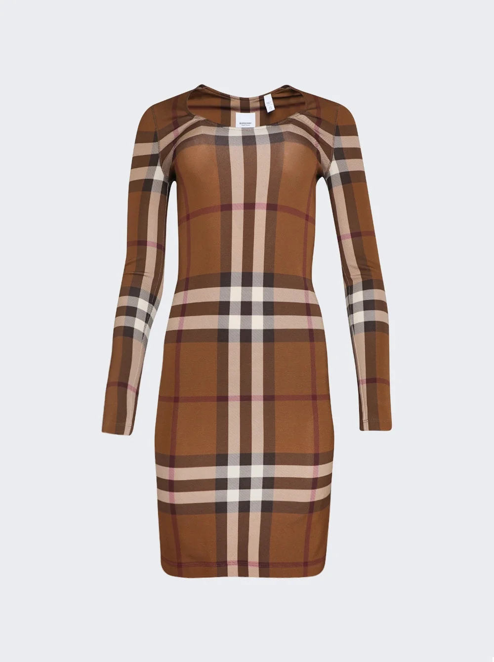 Check Stretch Long Sleeve Dress Dark Birch Brown