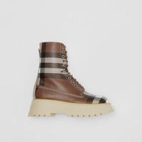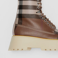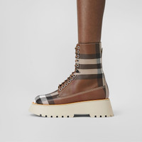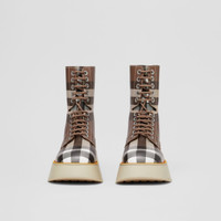 PRODUCT DETAILS Italian-crafted boots in faux alligator-effect embossed leather, animated with our Exaggerated Check. The design is set on an exaggerated platform sole. Upper: 55% cotton, 45% polyurethane Trim: 50% brass, 50% polyester Lining: 92% calf leather, 8% goat leather Sole: 100% thermoplastic polyurethane Lace-up style Almond-shaped toe Polished metal hardware Made in Italy 80608141
