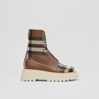 Exaggerated Check Platform Faux Leather Boots