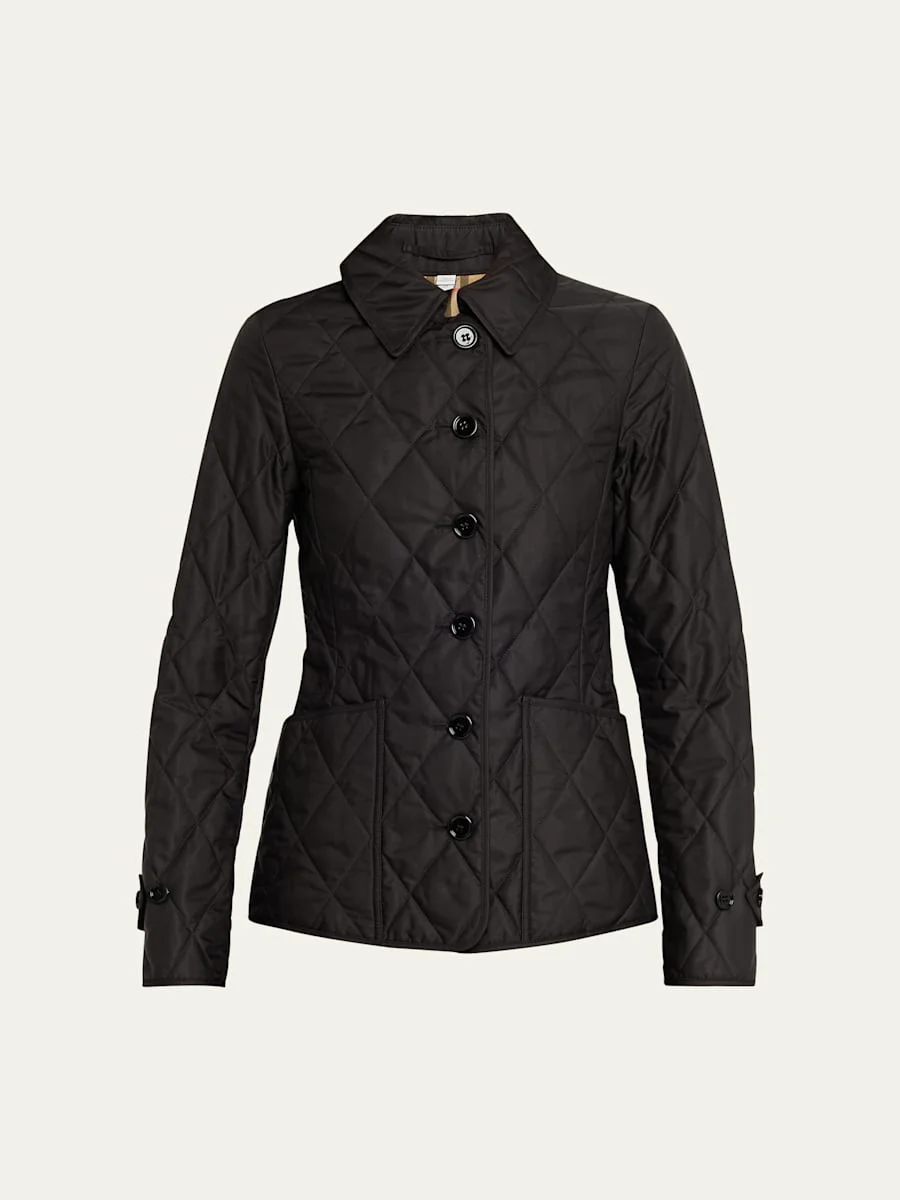 Finished with diamond quilting and lined in Burberry Check, the "Fernleigh" lightweight coat by Burberry features 37.5® thermoregulation technology for insulation and breathability Point collar with hook closure Long sleeves; buttontab cuffs Side patch pockets Slim fit Hip length Singlebreasted button closure Polyester Lining: Cotton Fill: Polyester Dry clean Made in Italy