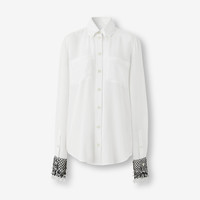 Fishnet Cuff Silk Crepe de Chine Shirt
