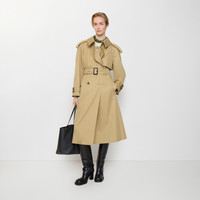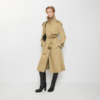 Product Details Relaxed fit: a looser cut than our regular fit. Adding volume to our signature rainwear, the Fitzrovia trench coat is made in Yorkshire from water-resistant gabardine, treated for a soft finish. The A-line style is cut to a relaxed fit, featuring wider sleeves and a fuller skirt. Raglan construction gives a softer line at the shoulders while an archival trench inspires the curlicue shape of the pockets. Inside is Burberry Check cotton lining in signature sand beige. - Double-breasted button closure - Hook-and-eye collar closure - Throat latch - Epaulettes - B buckle belt - Side button welt pockets - Belted cuffs - Back button vent - Burberry Check lining and undercollar - Comes with a garment bag - Item 81185411 Size & Fit - Relaxed fit: a looser cut than our regular fit. - Length: 115cm/45.3in (size UK 8) - Model’s height: 180cm/5ft 11in. Model wears size UK 8 Fabric & Care - Outer: 100% cotton - Lining: 100% cotton - Sleeve lining: 100% cupro - Buckles: 100% calf leather - Buttons: buffalo horn - Specialist dry clean - Made in Yorkshire, England