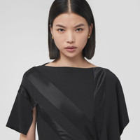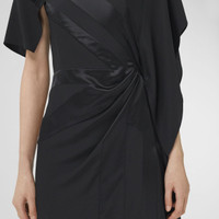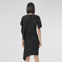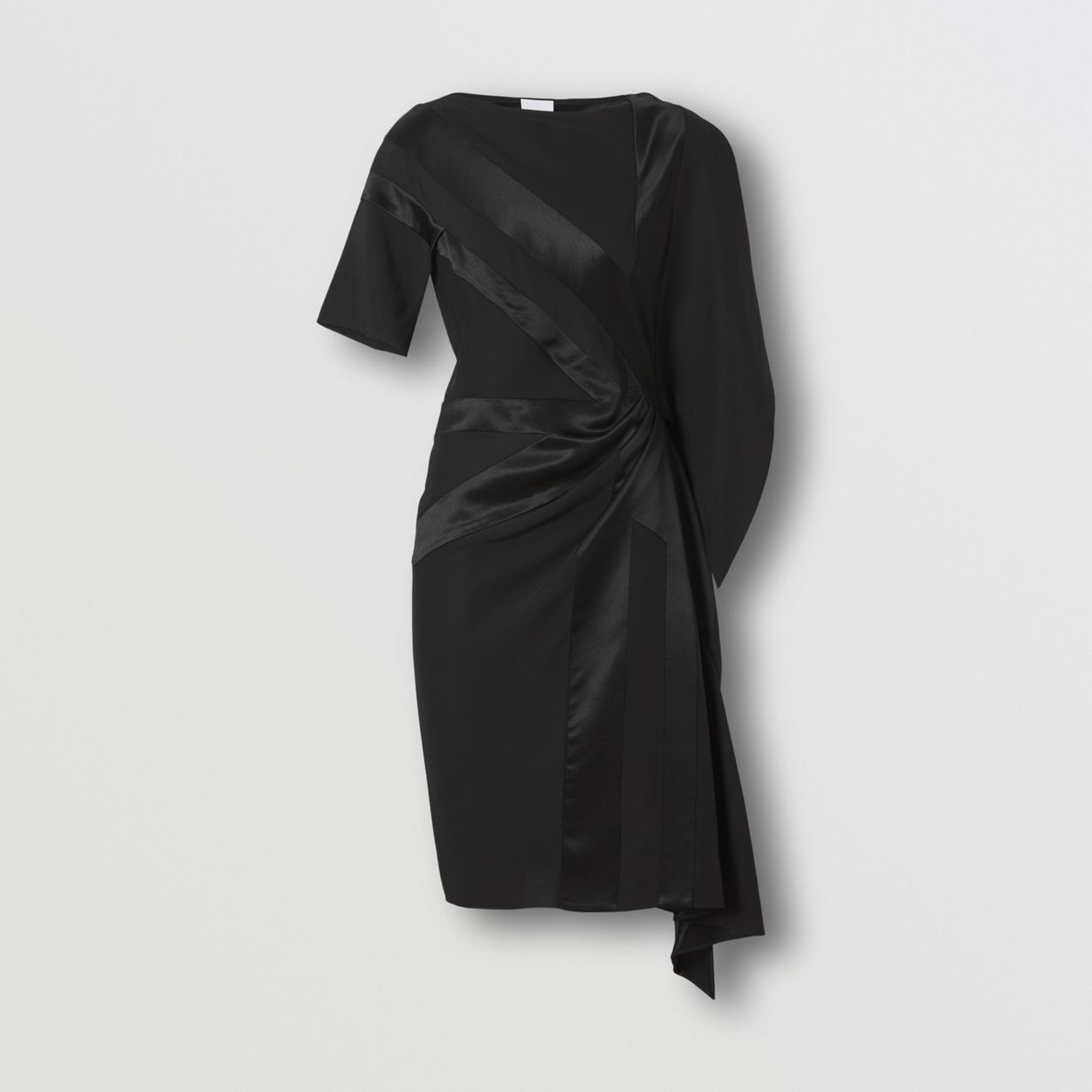 PRODUCT DETAILS An elegant boat-neck silhouette with asymmetric sleeves, cut from Italian-woven silk. The style is highlighted with an intarsia flag motif and is gathered at the waist for a flattering fit. Dress length: 103cm/40.6in. This is based on a size UK 6 as proportions change slightly according to size. 100% silk Concealed side hook-and-eye and zip closure Specialist dry clean Made in Italy 80473531