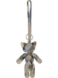 Knit keychain in gray and blue. - Knit padded charm with check pattern - Wristlet and keyring at top - Gold-tone hardware - H6 x W5 Supplier color: Lichen