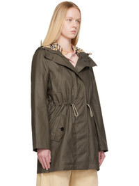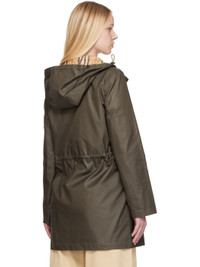 Lightweight coated cotton gabardine parka. · Bungee-style drawstring at hood and waist · Stand collar · Zip closure with button placket · Welt pockets at chest · Flap pockets at waist · Fully lined Supplier color: Military Body: 100% cotton. Lining: 100% cotton. Made in United Kingdom 252376F063002