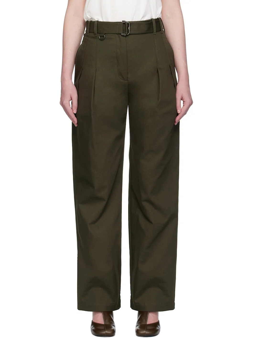 Cotton gabardine trousers. · Wide-leg · Belt loops · Detachable cinch belt with D-ring · Three-pocket styling · Zip fly · Darts and pleats at waist · Gunmetal-tone hardware Supplier color: Shale 100% cotton. Made in Romania 252376F087000