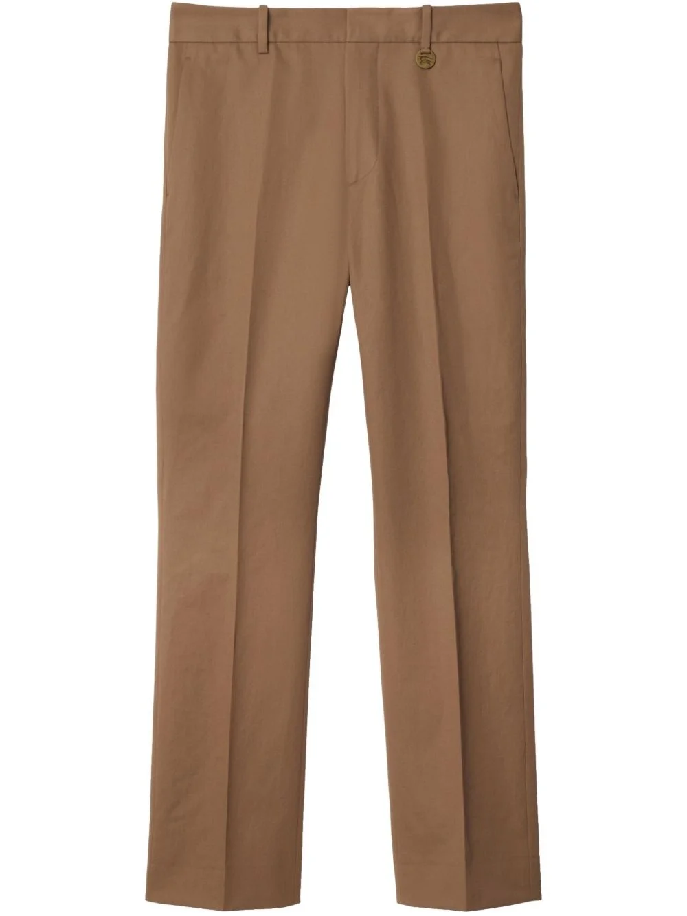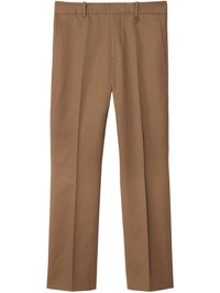 gabardine trousers Highlights - Chocolate brown - Hook and zip fly fastening - Two side slash pockets - Two rear welt pockets - Signature equestrian knight motif Made in Italy Composition Lining: Cotton 100% Outer: Cotton 100%