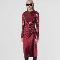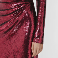PRODUCT DETAILS An Italian-made dress in form-fitting stretch nylon, draped and gathered at the waist. The long-sleeved design is embroidered with scores of shimmering sequins. Dress length: 110cm/43.3in. This is based on a size UK 6 as proportions change slightly according to size. Model’s height: 178cm/5ft 10in. Model wears size UK 6. Outer: 82% polyamide, 18% elastane Embellishment: 100% polyester Lining: 100% silk Long sleeves Concealed back hook-and-eye and zip closure Specialist dry clean with any solvent except perchloroethylene Made in Italy 80547271