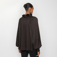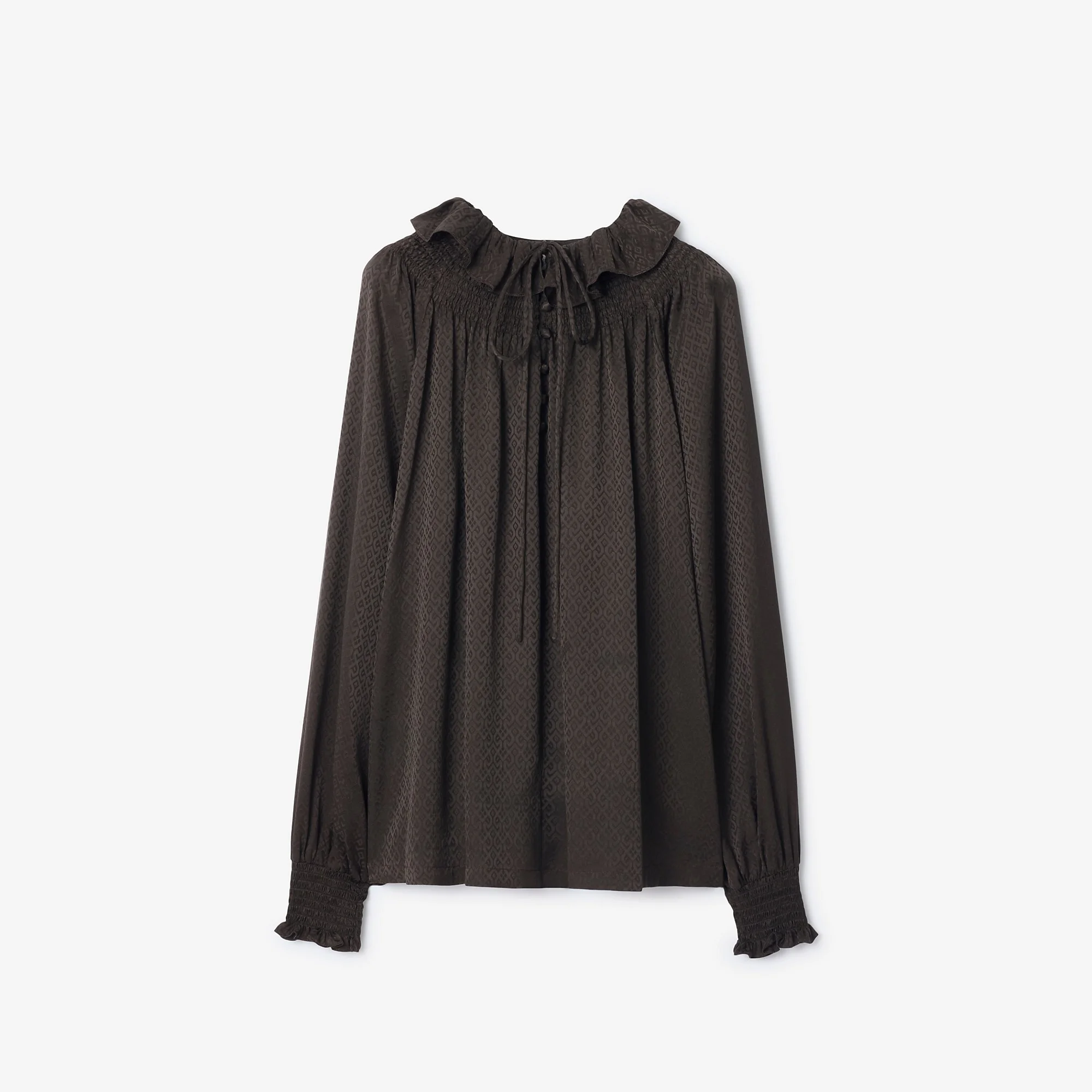 Product Details A blouse made in Italy from silk crepe de chine, jacquard-woven with a geometric design inspired by wallpapers found in British stately homes. Cut to a relaxed fit with smocking and ruffles to shape the neckline and cuffs. - Button closure - Self-tie collar - Elasticated cuffs - Side splits - Relaxed fit: a looser cut than our regular fit. - Item 81159141 Size & Fit - Length: 69cm/27.2in (size UK 6) - Model’s height: 180cm/5ft 11in. Model wears size UK 6 Fabric & Care - 100% silk - Specialist dry clean - Made in Italy