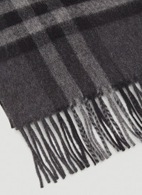 Giant Icon scarf crafted from cashmere in a felted weave. - Oversized intarsia house-check motif - Fringed ends - 100% Cashmere. - Color: Grey - Code: 3913731 0260B