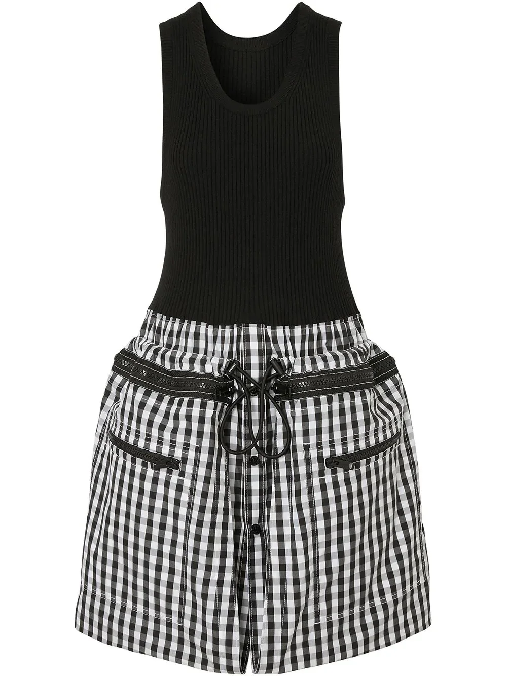 gingham loop-back dress Not even in a million years, checks, whatever the format, will be out of style. Constructed from pure cotton and wool-blend, this gingham loop-back dress from Burberry is a great option for everyday wear. Checkmate! Highlights - Black - Cotton and wool-blend - Round neck - Sleeveless - Drawstring fastening waist - Front zip fastening pockets - Gingham check prin - short length - Zip detail around the waist Made in Italy Composition Cotton 100%, Wool 83%, Polyamide 16%, Spandex/Elastane 1% Washing instructions Specialist Cleaning