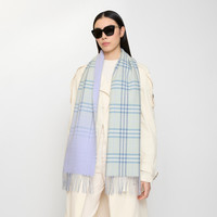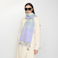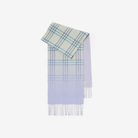 Product Details A double-faced cashmere scarf, jacquard-woven with a subtle gradient that blends the Burberry Check into a solid lilac colourway. Made at a family-run mill in Scotland, the fabric is washed in local spring water and brushed with teasels – dried flowers that are drawn along the surface of the cashmere to ’raise’ the cloth, creating a natural lustre and ultra-soft finish. Two further washes are given for a fuller texture. - Rectangular - Fringing at both ends - Item 81176851 Size & Fit - 168 x 30cm/66.1 x 11.8in Fabric & Care - 100% cashmere - Specialist dry clean - Made in Scotland