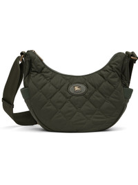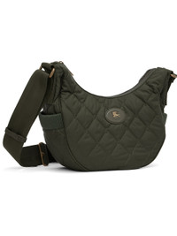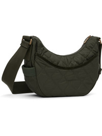 Quilted technical nylon satin messenger bag. · Adjustable crossbody strap · Leather logo patch at face · Rib-knit patch pocket at sides · Magnetic compartment at back face · Zip closure · Check-patterned lining · H8" x W13" x D4" Supplier color: Shale Nylon. Made in Romania 252376F048008