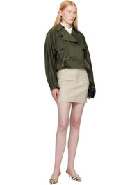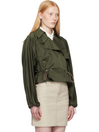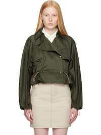 Polyester- and nylon-blend satin jacket. · Bungee-style drawstring at detachable hood · Notched lapel · Throat guard and hook-eye fastening at collar · Double-breasted press-stud closure · Storm flap at chest · Cropped hem · Bungee-style drawstring at hem and cuffs · Raglan sleeves Supplier color: Shale 58% polyester, 42% polyamide. Made in Albania 252376F063007