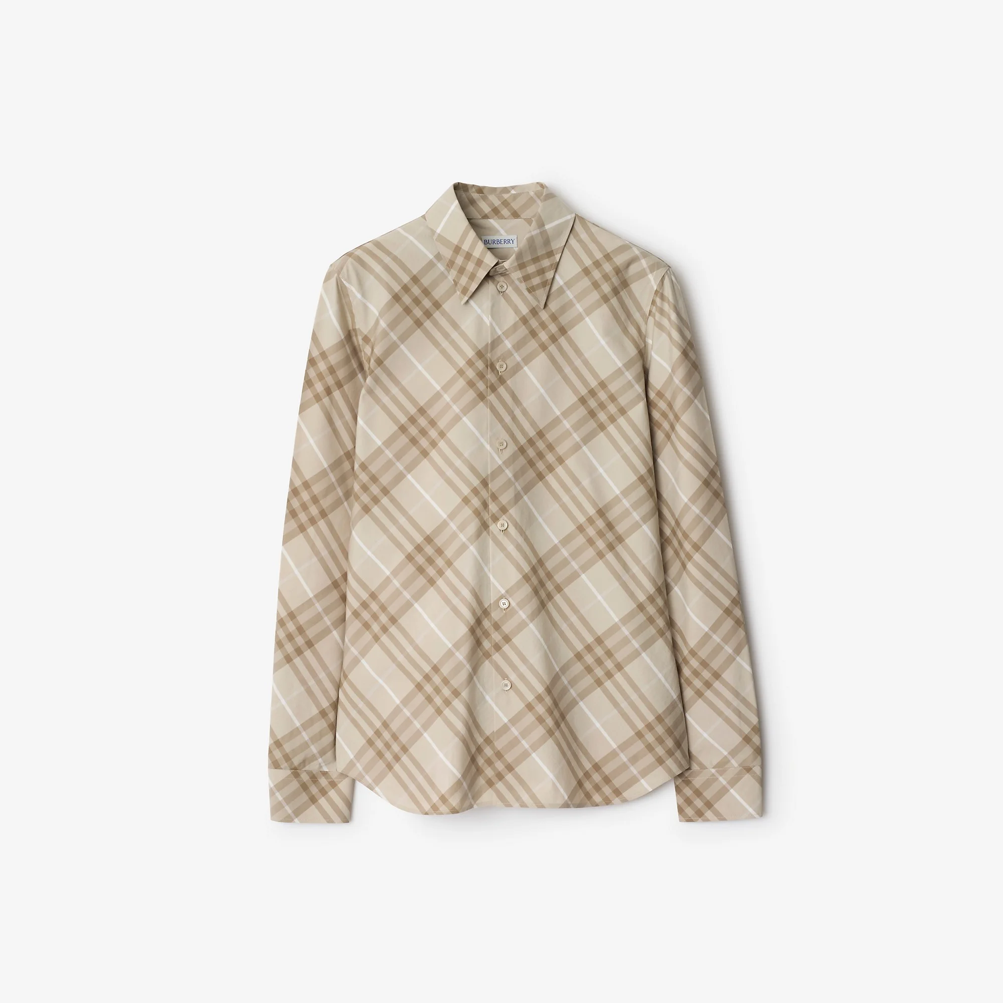 Product Details A long-sleeved shirt made from cotton woven with the Burberry Check. The style is cut to a slim fit. - Button closure - Point collar - Single-button cuffs - Curved hem - Slim fit: this style is cut to a fitted silhouette. Fits true to size, take your normal size. - Item 81159641 Size & Fit - Length: 68cm/26.8in (size UK 10) - Model’s height: 180cm/5ft 11in. Model wears size UK 10 Fabric & Care - 100% cotton - Buttons: mother-of-pearl - Specialist dry clean - Imported
