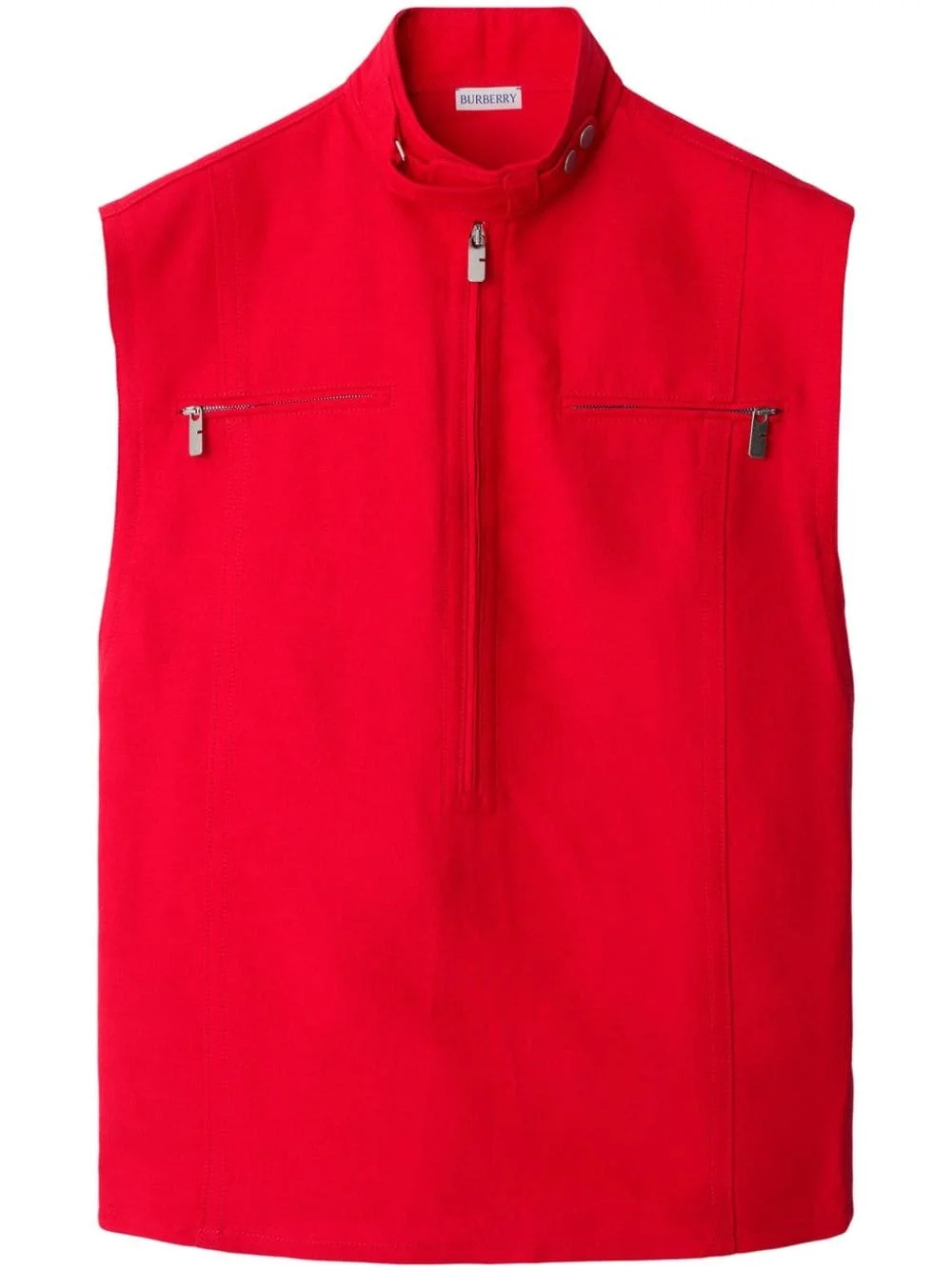 half-zip canvas tank top Highlights - Flared - Canvas - High neck - Sleeveless - Half front zip fastening - Two zip-fastening chest pockets - Curved hem Imported Composition Outer: Paper 69%, Viscose 31% Lining: Cotton 100%