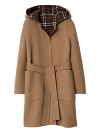 hooded belted coat Highlights - Camel - Double-faced panel - Hooded style - Wrap closure - Two front patch pockets - Detachable belt Made in Italy Composition Fabric 100% Washing instructions Read Manufacturer Guidelines