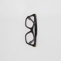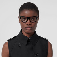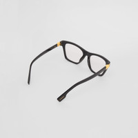 PRODUCT DETAILS An angular square frame in black acetate, finished with a polished detail inspired by the hardware on our Olympia bag. Frames are shipped with demonstration lenses which must be replaced before use. Please contact your optician before purchase to check if your chosen frame is suitable for your prescription or replacement lenses. Frames cannot be returned once prescription or replacement lenses have been fitted. Frame width: 14.3cm/5.6in Frame height: 4.7cm/1.9in Acetate frame Printed Burberry lettering at temple tips Made in Italy Comes with a hard leather case and cleaning cloth 40823671