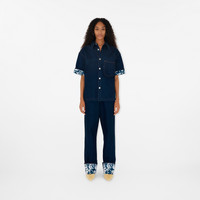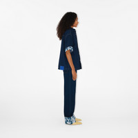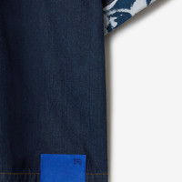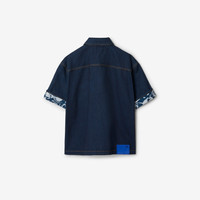 PRODUCT DETAILS A short-sleeved shirt in Japanese heavyweight denim. The design is cut to an oversized fit and features a rose-print lining at the cuffs. - Length: 67cm/26.4in (size UK 6) - Model’s height: 177cm/5ft 10in. Model wears size UK 6 Oversized fit: our loosest cut, designed for exaggerated proportions. We recommend sizing down. Outer: 100% cotton Trim: 100% calf leather Lining: 58% polyester, 42% cotton Hand wash Made in Italy Item 80807811