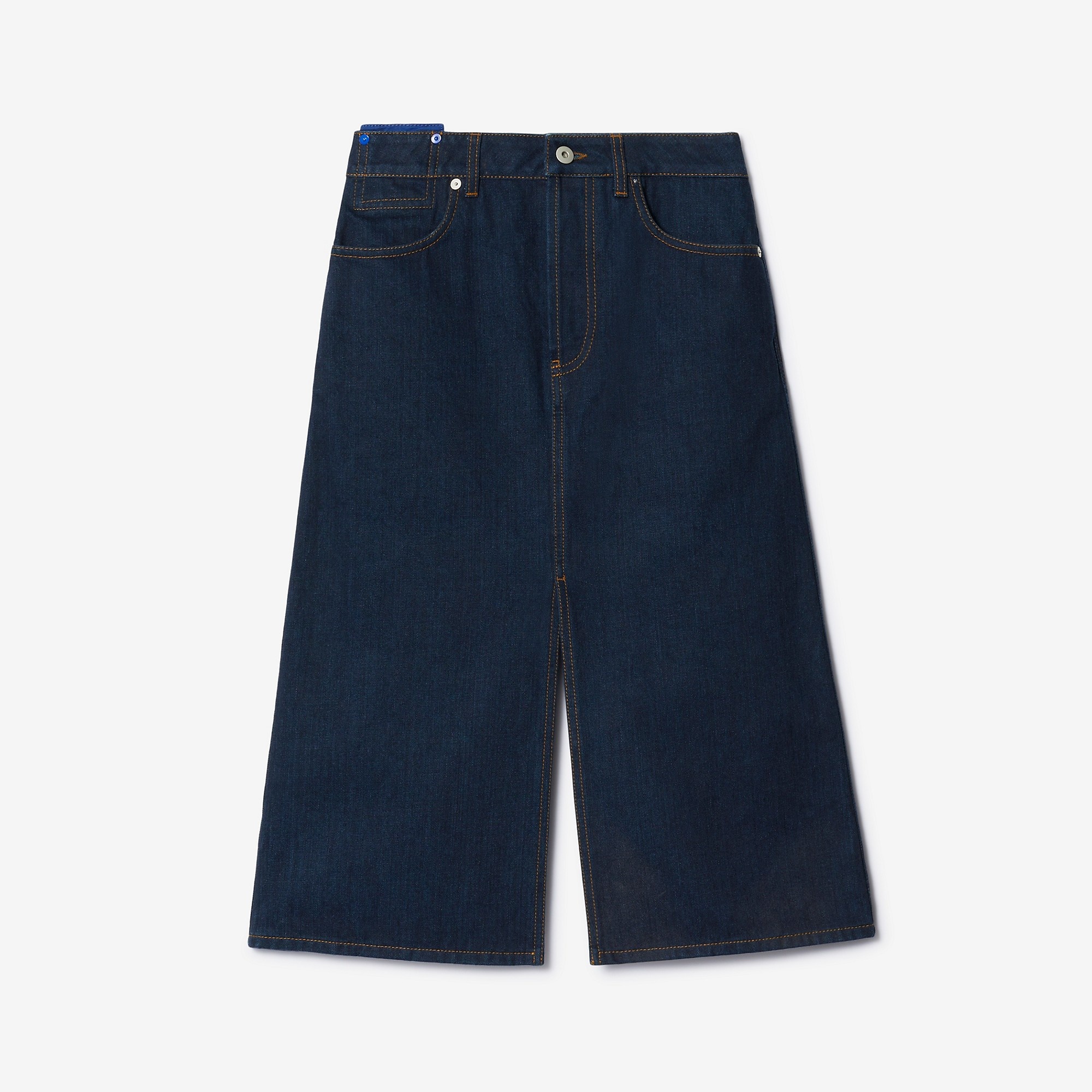 PRODUCT DETAILS A skirt made from Japanese heavyweight denim with exaggerated splits. The design features a suede patch embossed with the Equestrian Knight Design at the back. - Length: 75cm/29.5n (size UK 6) - Model’s height: 175cm/5ft 9in. Model wears size UK 6 100% cotton Trim: 100% calf leather Hand wash Made in Italy Item 80807831