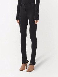 high-waisted fringed-edge leggings Burberry creates an opulent design with an innovative twist in this pair of leggings, featuring a tonal colourway, high-waisted silhouette and fringe-detail cuffs. Imported Composition Viscose 68%, Polyamide 28%, Spandex/Elastane 4% Washing instructions Dry Clean Only