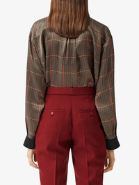 high-waisted side stripe trousers Time to put your big-girl pants on. Step into that meeting like you already own the place with the confidence boost that these high-waisted side stripe trousers from Burberry will give you. You got this (and very soon, you'll have these too). Highlights - Dark carmine - Wool/mulberry silk - Tailored cut - High-waisted - Concealed front fastening - Two rear welt pockets - Two diagonal pockets to the sides - Silk stripe detail to the side Made in Italy Composition Lining: Cupro 93%, Elastane 7% Outer: Wool 100% Trims: Mulberry Silk 100%