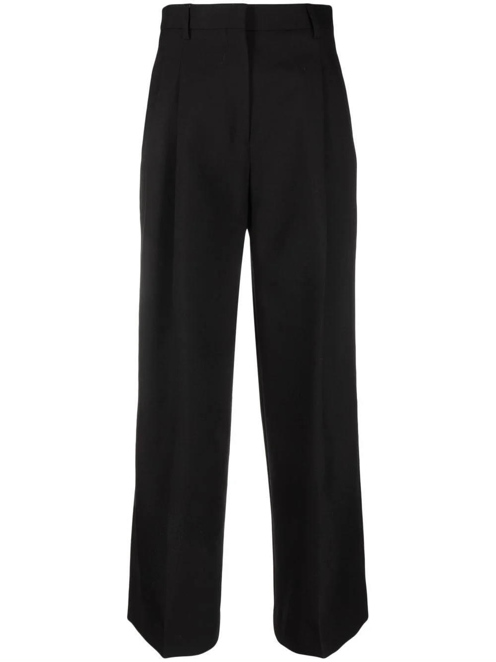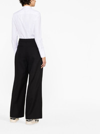 high-waisted wide-leg trousers Spun from delicate wool in Italy, these black tailored trousers from Burberry sit high at the waist for an elongating silhouette whilst falling into a wide leg - a nod to the house's penchant for understated yet timeless designs. Made in Italy Composition Wool 100% SIZE & FIT Model measurements Height 5 ft 10 in(1.78 m) Bust/Chest 30.7 in(78 cm) Hips 34.64 in(88 cm) Waist 23.22 in(59 cm) FittingInformation This piece fits true to size. We recommend you get your regular size Designed to be fitted at the waist and hips, loose over the leg Made with a mid-weight non-stretch fabric
