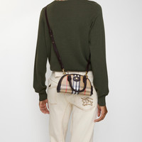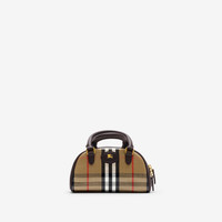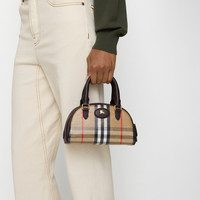 Product Details Rooted in the outdoors, our mini Highlands bowling bag is made in Italy from a cotton linen blend trimmed with smooth calf leather and lined in cotton. The fabric is jacquard-woven with the Burberry Check and has a coated finish inspired by rainwear. The design can be worn crossbody with the detachable strap and is finished with our Knight stamp, an archival motif first seen on Burberry bags in the 1980s. - Rolled leather top handles - Detachable, adjustable leather strap - Two-way zip closure - Hand-painted edges - Brushed metal hardware - Leather patch with Equestrian Knight Design at front - Cotton lining - Comes with a dust bag - Item 81152811 Size & Fit - 19.5 x 9 x 12cm/7.7 x 3.5 x 4.7in. Min. strap drop: 48cm/18.9in. Max. strap drop: 62cm/24.4in Fabric & Care - 69% cotton, 21% viscose, 10% linen - Trim: 100% calf leather - Lining: 100% cotton - Made in Italy