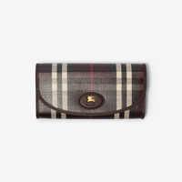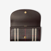 Product Details A continental wallet made from a cotton linen blend trimmed with smooth calf leather. The fabric is jacquard-woven with the Burberry Check and has a coated finish inspired by rainwear and the outdoors. The design is detailed with our Knight stamp, an archival motif first seen on Burberry bags in the 1980s. - Foldover flap with press-stud closure - 12 card slots - Zip compartment - Two interior slip pockets - Hand-painted edges - Brushed metal hardware - Leather patch with Equestrian Knight Design at front - Comes with a dust bag - Item 81147301 Size & Fit - 19.5 x 4 x 10cm/7.7 x 1.6 x 3.9in Fabric & Care - Outer: 69% cotton, 21% viscose, 10% linen - Trim: 100% calf leather - Linings: 100% lambskin; 53% cotton, 47% polyurethane - Imported