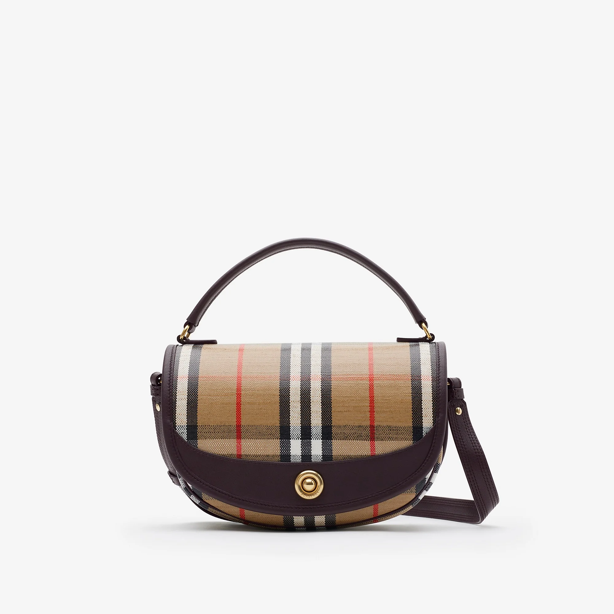 Product Details Rooted in the outdoors, a crossbody bag made in Italy from a cotton linen blend trimmed with smooth calf leather and lined in cotton. The fabric is jacquard-woven with the Burberry Check and has a coated finish inspired by rainwear. A detachable leather strap switches the design from a crossbody to top handle bag. - Leather top handle - Adjustable leather strap - Magnetic push-button closure - Interior slip pocket - Hand-painted edges - Brushed metal hardware - Engraved Burberry lettering at closure - Cotton lining - Comes with a dust bag - Item 81121601 Size & Fit - 24.5 x 8 x 18cm/9.7 x 3.2 x 7.1in. Min. strap drop: 42cm/16.5in. Max. strap drop: 53cm/20.9in Fabric & Care - 69% cotton, 21% viscose, 10% linen - Trim: 100% calf leather - Lining: 100% cotton - Made in Italy