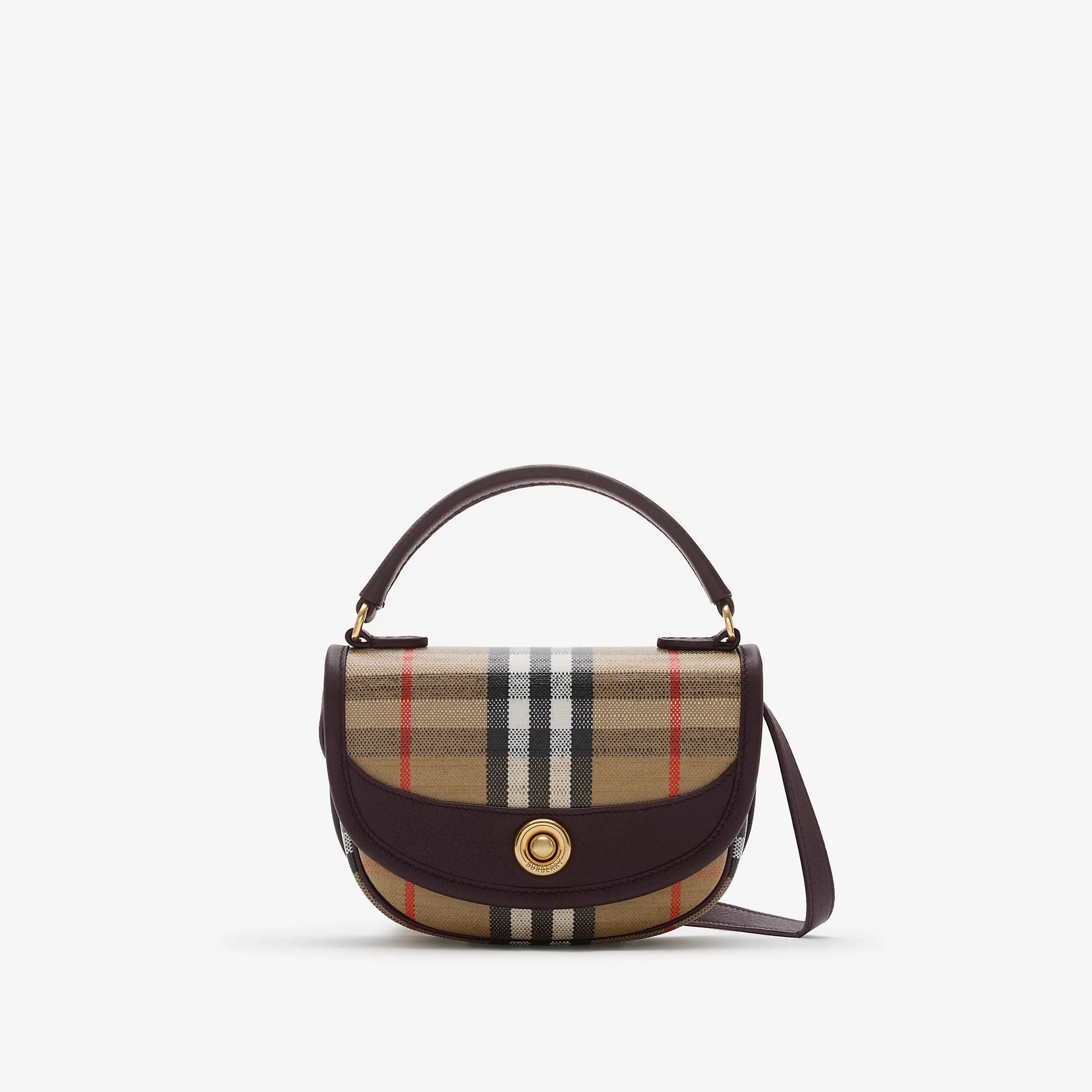 Product Details Rooted in the outdoors, a compact bag made in Italy from a cotton linen blend trimmed with smooth calf leather and lined in cotton. The fabric is jacquard-woven with the Burberry Check and has a coated finish inspired by rainwear. Carry by the top handle or adjust the strap to wear on the shoulder or as a crossbody. - Leather top handle - Adjustable leather strap - Magnetic push-button closure - Two card slots - Interior slip pocket - Hand-painted edges - Brushed metal hardware - Engraved Burberry lettering at closure - Cotton lining - Comes with a dust bag - Item 81122401 Size & Fit - 19 x 5 x 11cm/7.5 x 2 x 4.3in. Min. strap drop: 51cm/20.1in. Max. strap drop: 66cm/26in Fabric & Care - Outer: 69% cotton, 21% viscose, 10% linen - Trim: 100% calf leather - Lining: 100% cotton - Made in Italy