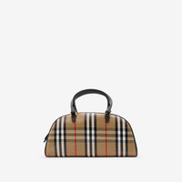Product Details Rooted in the outdoors, a bowling bag made in Italy from a cotton linen blend trimmed with smooth calf leather and lined in cotton. The fabric is jacquard-woven with the Burberry Check and has a coated finish inspired by rainwear. The design can be worn crossbody with the detachable strap and is finished with our Knight stamp, an archival motif first seen on Burberry bags in the 1980s. - Rolled leather top handles - Detachable, adjustable leather strap - Two-way zip closure - Interior slip pocket - Hand-painted edges - Brushed metal hardware - Leather patch with Equestrian Knight Design at front - Cotton lining - Comes with a dust bag - Item 81123431 Size & Fit - 33.5 x 12.5 x 17cm/13.2 x 4.9 x 6.7in. Min. strap drop: 37cm/14.6in. Max. strap drop: 50cm/19.7in Fabric & Care - 69% cotton, 21% viscose, 10% linen - Trim: 100% calf leather - Lining: 100% cotton - Made in Italy