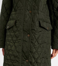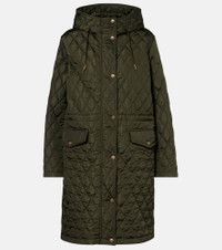 Burberry has built a reputation as a British heritage brand with unparalleled craftsmanship. Woven from lightweight fabric, this quilted jacket features a drawstring hood, flap pockets and a zip with snap-button closure. Product Details - Material: 100% polyamide - Care instructions: dry clean - Made in Romania - Designer color name: Shale - Item color: green - Lining: 100% cotton - Hood: 100% polyamide - Filling: 100% polyester - Closure: two-way zipped front with snap-button fastenings - Drawstring hood - Drawstring waist - Pockets: flap pockets, internal pocket - Item number: P01067137 Size & Fit - True to size - Loose fit, drawstring waist - Non-stretchy fabric - Falls below the hip - The model seen in the picture is 178cm-5'10" and wearing a size XS