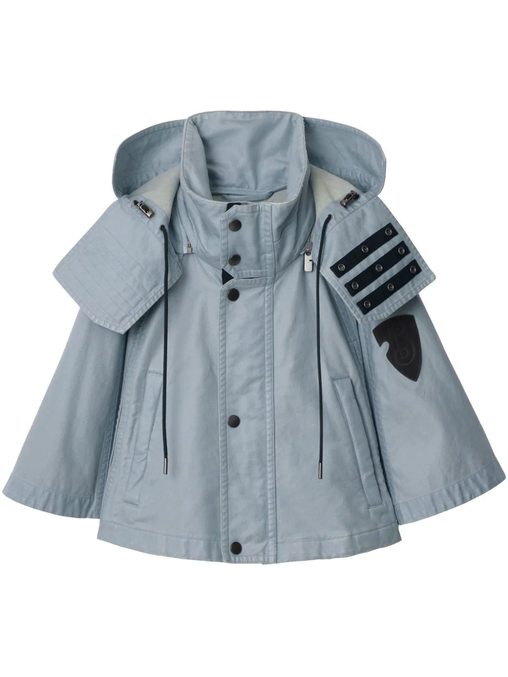 hooded cape Highlights - Blue - Front press-stud fastening - Drawstring hood - Long sleeves Made in Italy Composition Goat Skin 100%, Cotton 100%