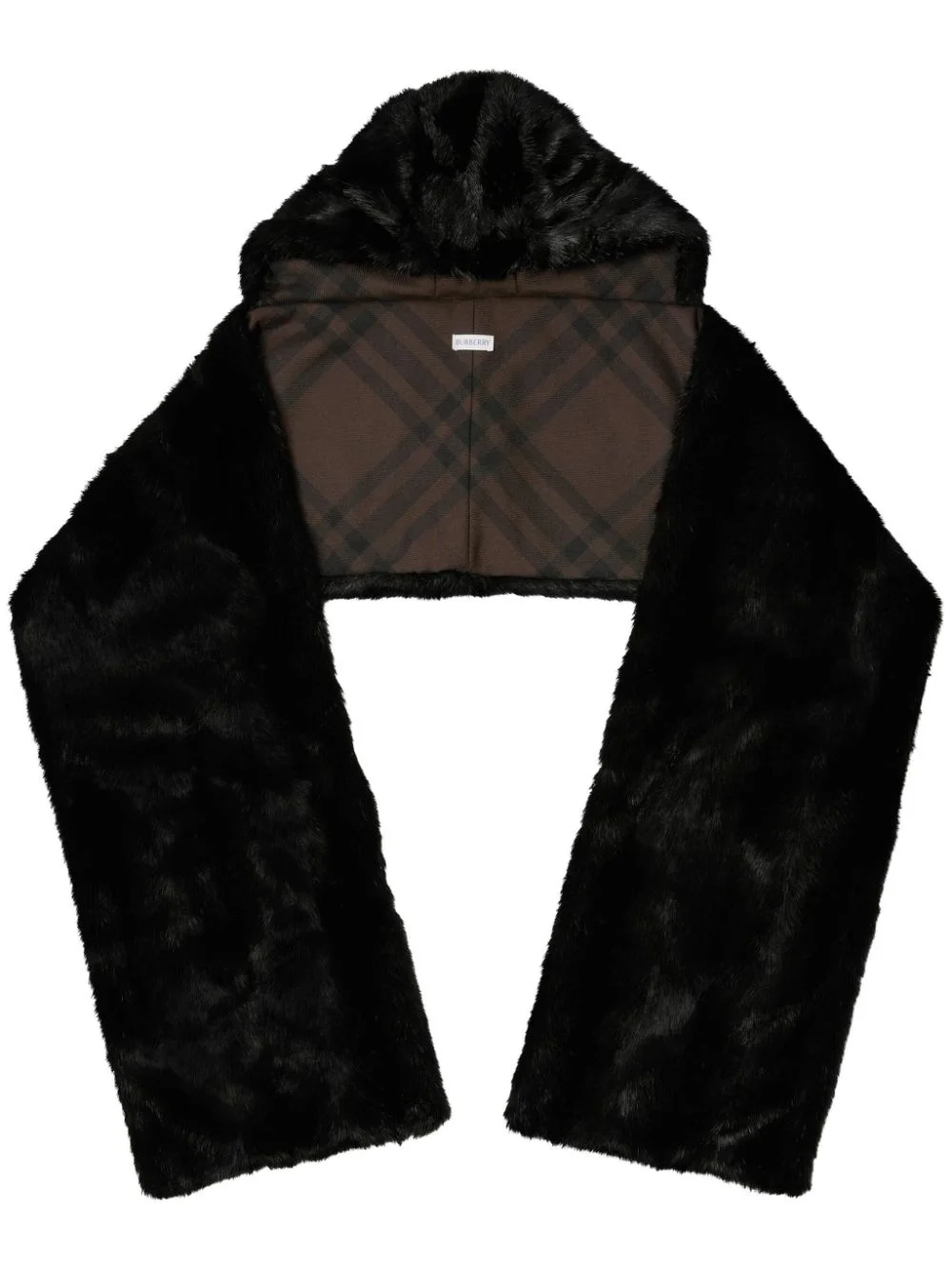 hooded faux-fur scarf Highlights - Black - Faux-fur design - Knitted construction - Brushed finish - Classic hood - Wraparound style - Checked lining Made in Italy Composition Lining: Polyester 67%, Wool 33% Outer: Modacrylic 75%, Polyester 25% SIZE & FIT Measurement LENGTH 82.67 in(210 cm) WIDTH 11.81 in(30 cm)