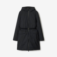Product Details A hooded coat in lightweight ripstop nylon, padded with goose down and feathers. The design is lined with fleece at the side pockets and appliqued with a leather Knight stamp, an archival motif from the 1980s. Cut to a regular fit with an elasticated Burberry Check belt to cinch the waist. - Two-way zip closure - Elasticated belt - Front press-stud flap pockets, side zip pockets - Storm cuffs - Engraved Burberry lettering at buckle - Leather patch with Equestrian Knight Design at sleeve - Comes with a garment bag - Regular fit. Fits true to size, take your normal size. - Machine wash - Item 81103061 Size & Fit - Length: 90cm/35.4in (size UK S) - Model’s height: 175cm/5ft 9in. Model wears size UK S Fabric & Care - Outer: 100% polyamide bonded to 100% polyamide - Trims: 100% leather; 79% polyester, 20% polyamide, 1% elastane - Belt: 82% polyamide, 10% elastane, 8% polyester - Lining: 100% polyamide - Filling: 90% goose down, 10% goose feathers - Wadding: 100% polyester fibres - Imported