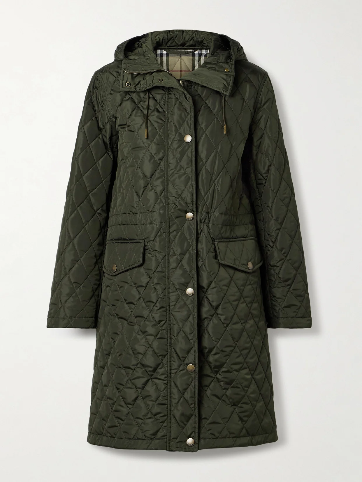 Each Burberry jacket draws on over a century's worth of outerwear expertise. This hooded style is cut from quilted shell in a longline shape cinched by internal waist toggles. Roll the cuffs to showcase its signature checked lining.