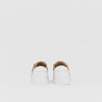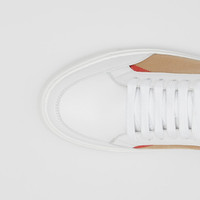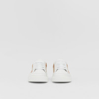 PRODUCT DETAILS Italian-made sneakers in smooth leather, panelled with our House check in English-woven cotton. Upper: 63% calf leather, 37% cotton Trim: 100% polyurethane Lining: 100% sheep leather Sole: 100% polyurethane Lace-up closure Raised Burberry lettering at heel Made in Italy We are committed to supporting our supply chain partners to source low-carbon energy, which significantly reduces the carbon footprint of our products. 80243261