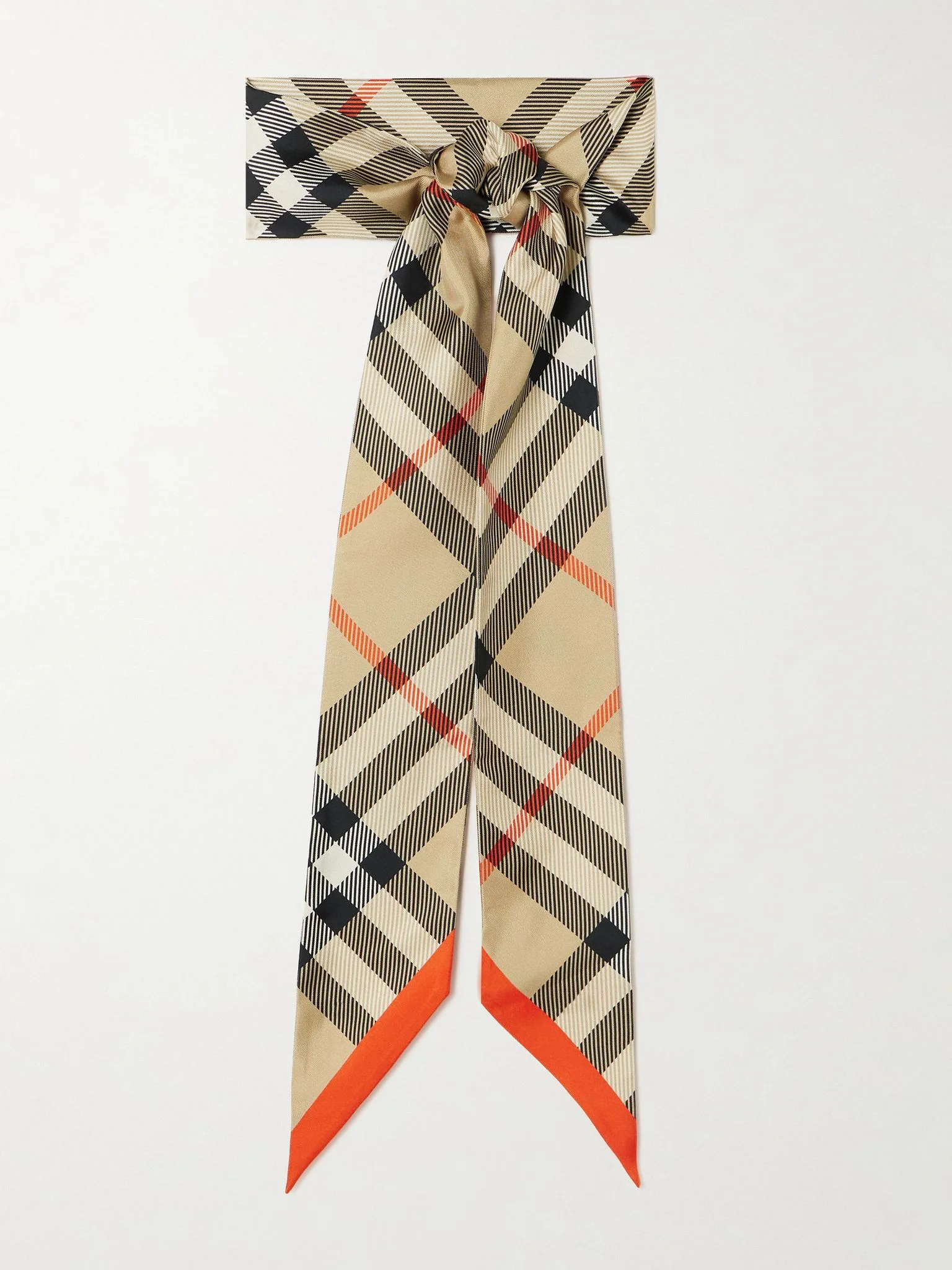 Burberry's scarf is part of the label's 'Classics' collection. Made in Italy from organic mulberry silk-twill, it's patterned with the iconic check motif and has slanted edges tipped with vibrant orange. Lower-Impact Materials. This product is made using at least 50% lower-impact materials or ingredients. Find out more about our NET SUSTAIN criteria here. Details & Care - Multicolored organic mulberry silk-twill - 100% organic mulberry silk - Dry clean