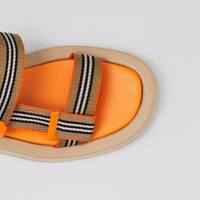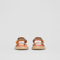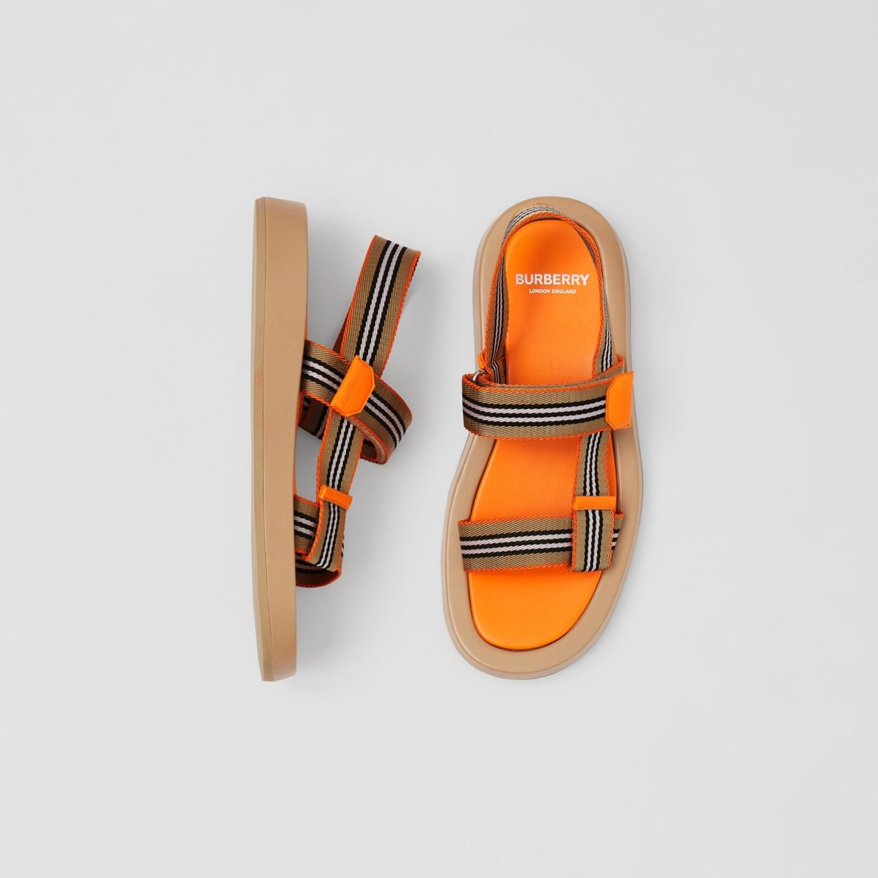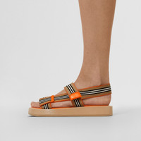 PRODUCT DETAILS Two-tone lambskin platform sandals highlighted with adjustable straps in our Icon stripe. Upper: 60% polyamide, 25% polyester, 10% lambskin, 5% polyurethane Trim: 100% brass with palladium plating Lining and platform: 100% lambskin Sole: 100% polyurethane Velcro strap closure Embossed Burberry lettering at strap Made in Italy 80508831