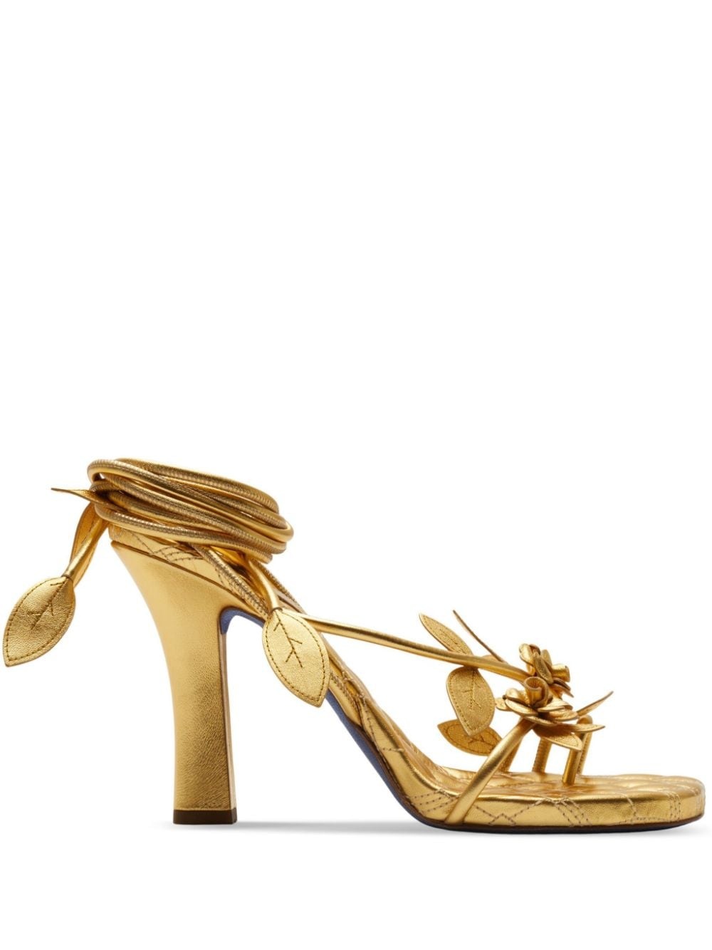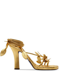 Ivy Flora metallic leather sandals Highlights - Gold-tone - Leather - Metallic finish - Leaf detailing - Strap detailing - Diamond quilting - Branded leather insole - Tie-fastening ankle strap - High block heel Made in Italy Composition Sole: Leather 100% Outer: Sheepskin 100% Lining: Sheepskin 100%