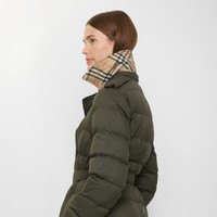 Product Details Inspired by the Burberry trench, a puffer coat in nylon filled with goose down and feathers. The double-breasted design is cut to a regular fit with signature epaulettes and a detachable B buckle belt. Adapt the silhouette by removing the hood and pop the collar to reveal a flash of Burberry Check. - Double-breasted press-stud closure - Detachable drawcord hood - Epaulettes - B buckle belt - Side press-stud welt pockets - Burberry Check undercollar - Comes with a garment bag - Regular fit. Fits true to size, take your normal size. - Machine wash - Item 81103151 Size & Fit - Length: 115cm/45.3in (size UK S) - Model’s height: 177cm/5ft 10in. Model wears size UK S Fabric & Care - Outer: 100% polyamide - Undercollar: 100% polyester - Linings: 100% polyamide; 100% polyester - Filling: 90% goose down, 10% goose feathers - Wadding: 100% polyester fibres - Imported
