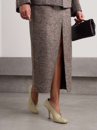 EDITORS'NOTES Burberry's pumps are designed to look as if they've been unzipped to reveal your feet inside. Made in Italy from supple leather, they have almond toes and are set on 100mm heels. SIZE & FIT - Fits true to size, take your normal size - Italian sizing DETAILS & CARE - Heel measures approximately 100mm/ 4 inches - Cream leather (Lamb) - Slip on - Designer color: Hunter